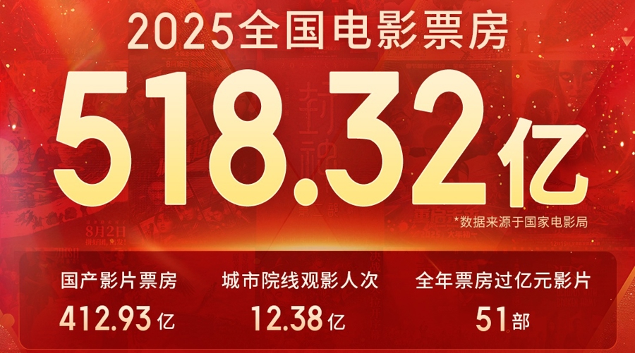 国度电影局数据:2025年中国电影市集全年票房518.32亿元,同比增长21.95%;不雅影东说念主次12.38亿,同比增长22.57%;全年国产影片票房412.93亿元,占比79.67%。与此同期,全年城市院线净增银幕数2219块,银幕总和达到93187块。
