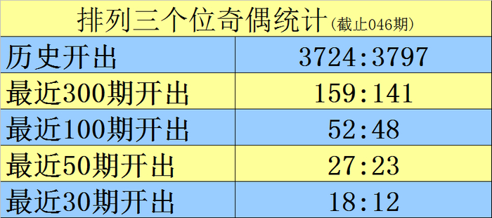 上期顾忌:摆列三2026046期奖号为703,类型为组六,奇偶比为2:1,大小比为1:2,和值为10。