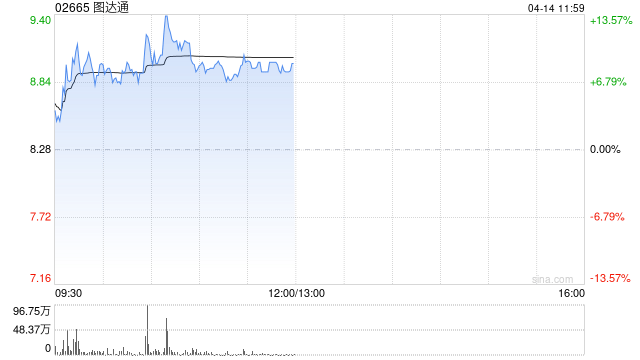 图达通(02665)早盘一度涨超14%,遗弃发稿,股价高潮8.33%,现报8.97港元,成交额9558.39万港元。