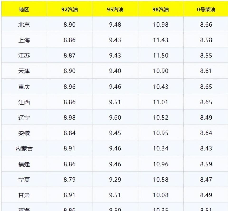 各地油价互异也不小。 海南和西藏是寰球最高的,因为海南的油价里包含了高速公路通行费,西藏则是因为运输资本高。 海南的95号汽油早就冲破了10元大关,达到10.65元/升。 云南、贵州、四川等地的95号汽油,价钱也无数在9.5元/升以上。