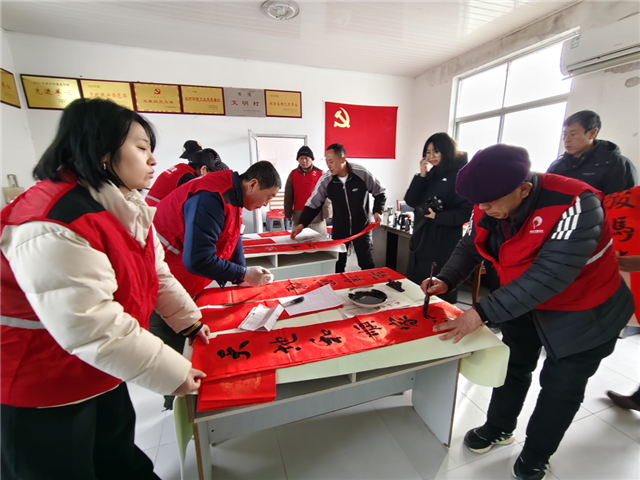 活动当日,汪疃镇威武村村委会院内暖意融融,墨香四溢。长桌铺开,红纸布阵,来自临港区书道家协会的书道志愿者和眷注村民凝想提笔,挥毫泼墨。笔走龙蛇间,一副副寓意祯祥、承载祝愿的对联和“福”字崭新出炉,传递着对新春的好意思好祈愿和对乡村振兴的真挚道贺。