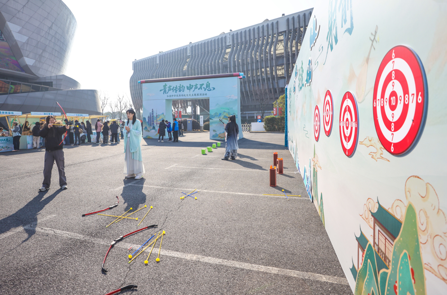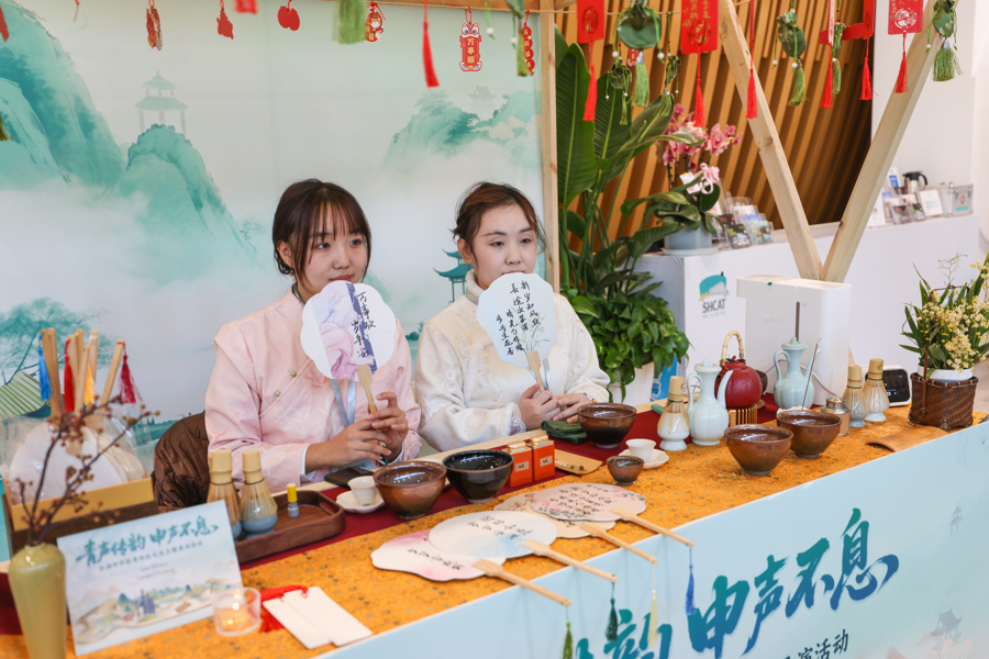 场外联动,激活文化体验戏院外同步开设传统文化游园市场。24个主题摊位分为互动体验与静态展示两大板块,劝诱繁密后生千里浸参与。投壶、射箭、九连环、猜谜、飞花令等游戏区域欢声继续;非遗展示区则如一幅细腻长卷:顾绣细腻纯真,茶艺幽香褭褭,民乐乐器静待朋友……后生们或亲手摆动龙狮,或提笔感受书道流转,或扈从非遗传承东谈主体验面塑、草编制作。市场不仅成为文化展示的窗口,更化身为后生触摸历史、对话传统的活力课堂。