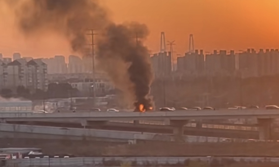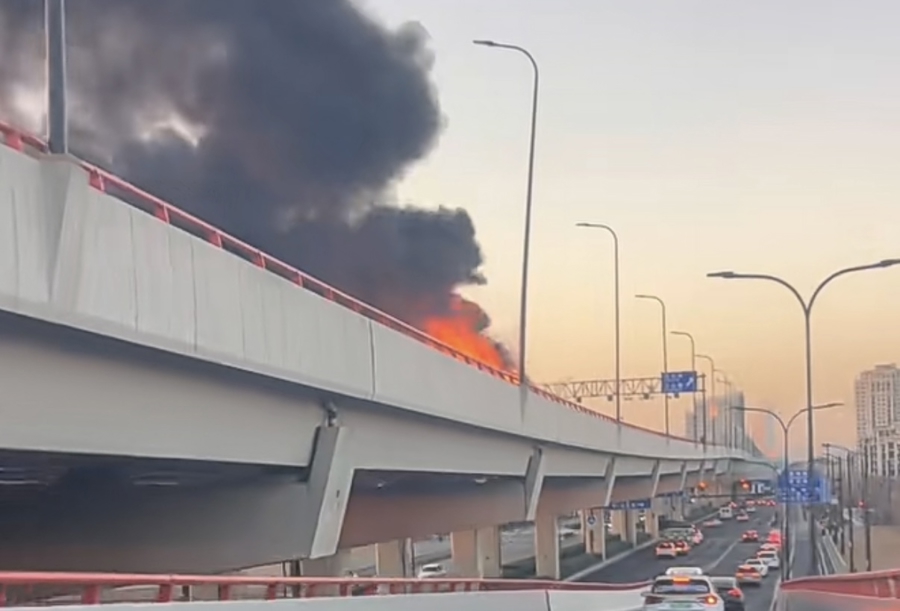 事故形成货车点燃,高架右侧侧墙熏黑,所幸事故未形成东谈主员伤一火。