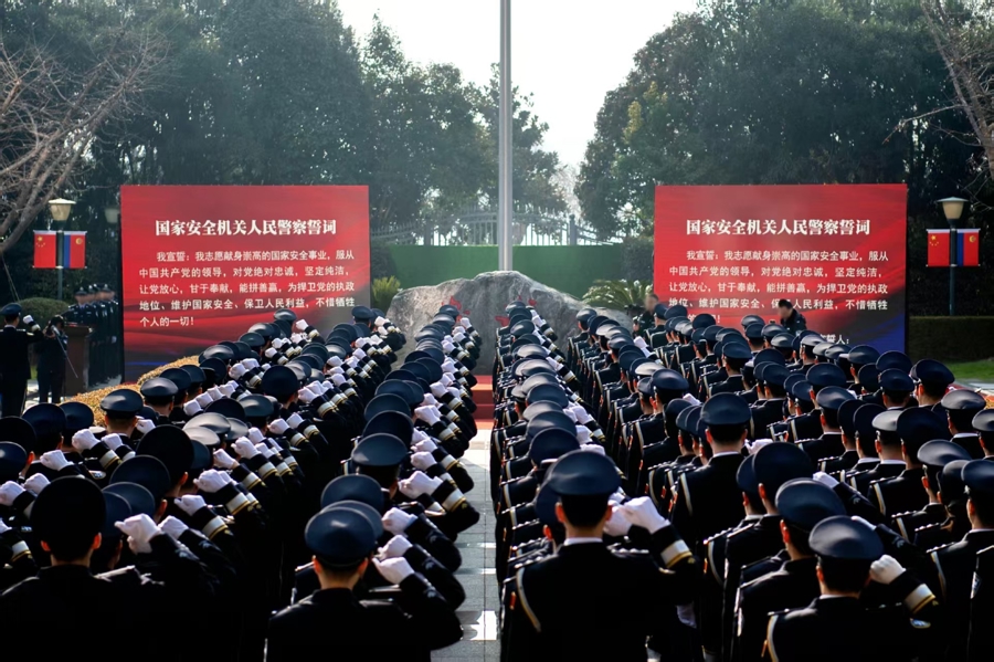 为管待第六个中国东谈主民警员节,1月9日上昼,上海市国度安全局纷乱举行升警旗宣誓暨警衔授衔庆典。市国度安全局党委通知、局长朱伟康教导干警面向中国东谈主民警员警旗敬礼并尊容宣誓,“执意清白、让党宽心、甘于奉献、能拼善赢”的铮铮誓词久久回响。庆典上,特意为晋升警监、警督、警司的干警代表授衔,为荣立高功等的干警代表颁发文凭。