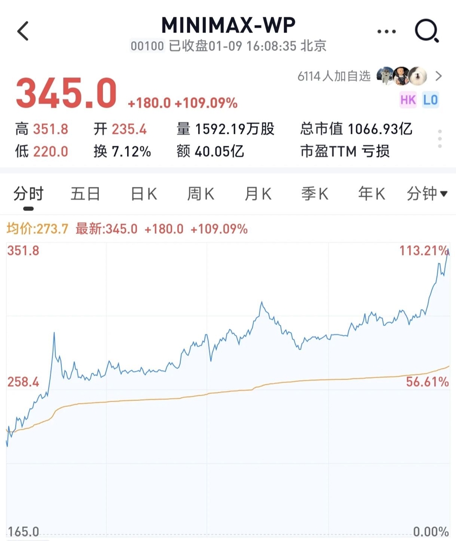 与此同期,港股商场也受到AI激越带动。1月9日,快乐彩appAI大模子公司MiniMax发扬登陆港交所,刊行价165港元每股。上市首日,股价一皆走高,最终收涨约109%,收报345港元每股,市值一举打破千亿港元。
