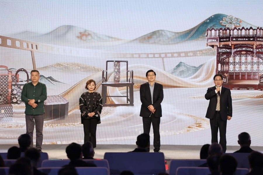 “人人好,我是宁波骨木嵌入国度级代表性传承东说念主陈明伟……诚邀您走进电影文化嘉年华非遗阛阓,在一嵌一刻间感受甬式风华与银幕好意思学的跨界共识。”当晚,中国工艺好意思术专家陈明伟当作非遗传承东说念主代表之一,先容宁波的骨木嵌入这项国度级非遗和我方的故事,并向不雅众发出邀请。“宁波七千年文脉,津润了骨木嵌入这项非遗,好多历史题材电影中王人有骨木嵌入产品的使用。我历时三年回生代表甬式产品巅峰时代的骨木嵌入‘万工床’,如今更将传统时代转换性诈欺于当代箱包筹画,荣获‘山花奖’。”