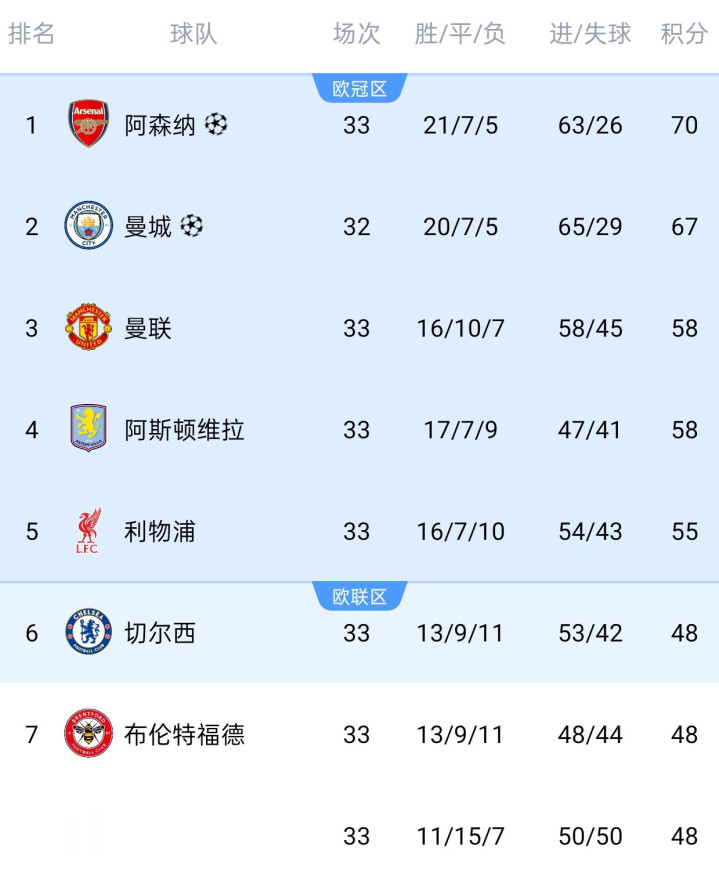 英超33轮战罢,阿森纳天然依然名轮番一,但仅跳跃曼城3分,篮球比赛投注app(中国)官网曼城少赛一场,两队净胜球仅差1球,这意味着曼城周中补赛独一赢2球以及以上即可在英超积分榜上登顶,快乐彩app赢得争冠的果然先机。