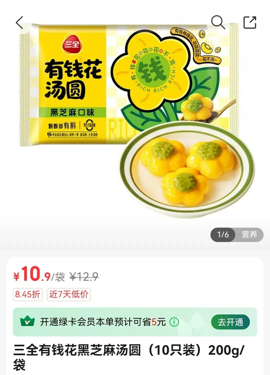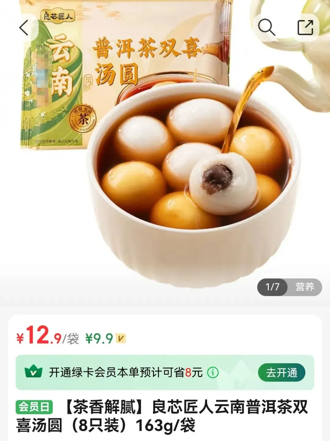 一碗汤圆吃出2种新奇口味!一半是豆沙馅,一半是五仁馅每一口王人软糯香甜!更稀罕的是这袋汤圆里还配有云南一级陈熟普洱茶汤深红透亮滋味甘醇顺滑吃一口甜甜的圆子喝一口幽香的茶汤甜而不腻这搭配还确凿有点奇妙呀!三全·放青松葵花籽忻悦果汤圆