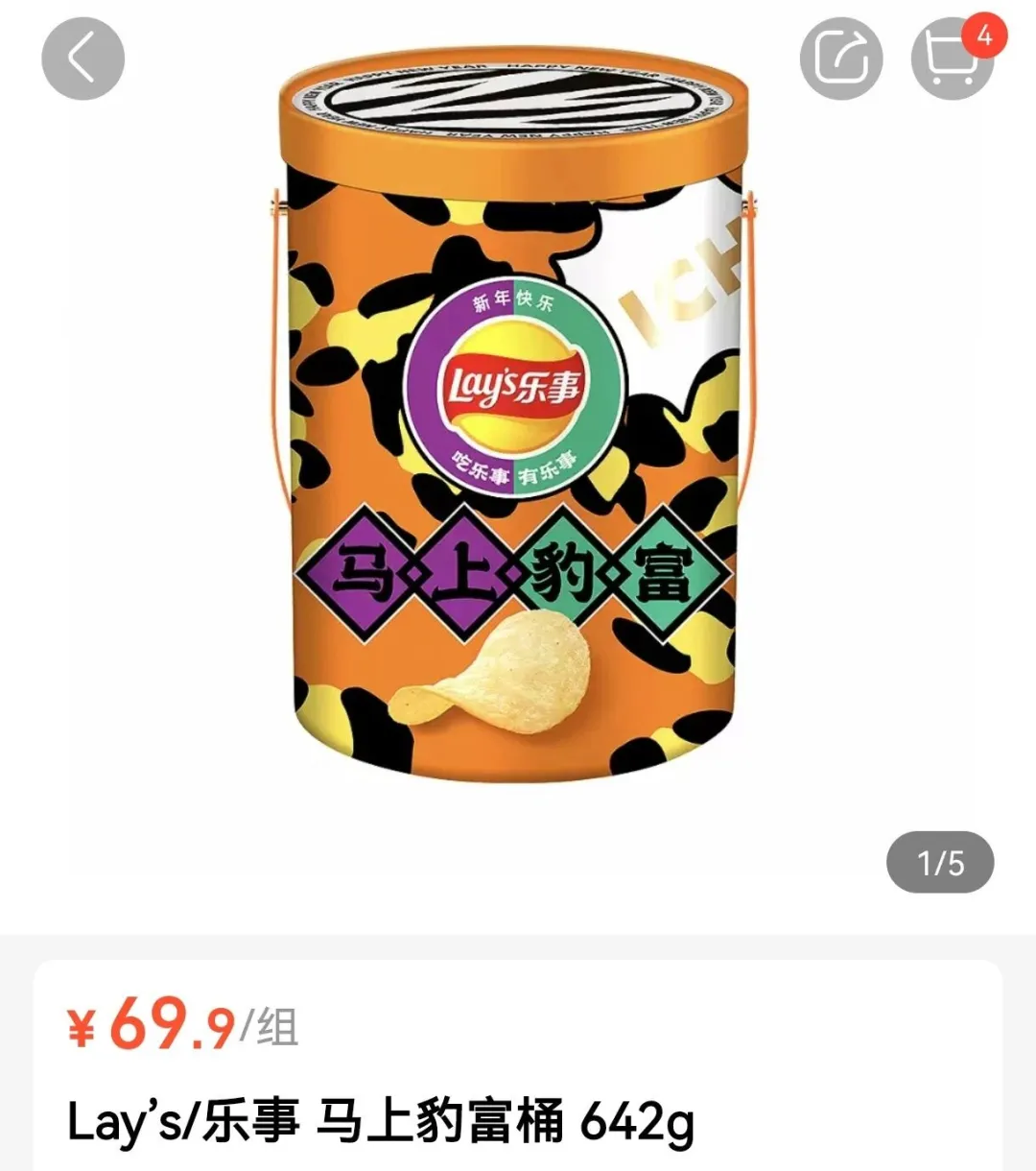 马年将至虽然要浪漫玩梗啦!乐事的这个“惟恐豹富桶”还融入了豹子的图案桶身的运筹帷幄文静又洋气吃收场还能二次哄骗变身收纳箱考虑得也太成全啦!