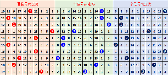 跨度分析:近10期跨度为:4,7,8,6,9,1,3,3,5,2,与前一期比拟着落3个点位,本期估计跨度值高潮,看好跨度5。