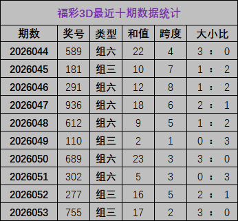 开奖回归:福彩3D上期开奖号为755,和值为17,跨度2,其中奖号大小比为3:0