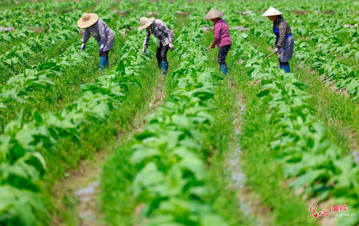 2026年4月19日快乐彩app,安徽省黄山市徽州区西溪南镇芝篁村,篮球比赛投注app(中国)官网村民在田庐劳顿。(施亚磊摄/光明图片)