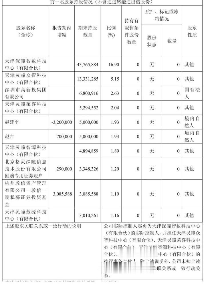限度2025年12月31日,天津深瞳智数科技中心(有限搭伙)握股为16.9%,天津灵瞳众智科技中心(有限搭伙)握股为5.15%,深圳市高新投集团有限公司握股为2.63%,天津灵瞳莱客科技中心(有限搭伙)握股为2.04%,快乐彩赵建平、赵吉诀别握股为1.93%;